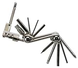 The Ventura 11-Function Folding Bike Tool Set is packed with helpful tools and features a folding design ideal for on-the-go repairs. This handy tool includes 7 allen keys, 1 flat and 1 Phillips screwdriver, a T25 torx tool, 1 chain rivet extractor, and 1 chain cutter. Youll also receive a nylon carrying bag.